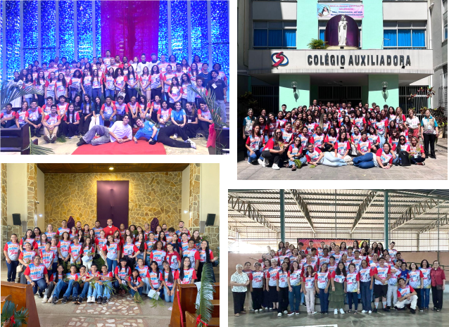 Entre os dias 27 e 29 de março, adolescentes, jovens, Coordenadores de Pastoral, leigos e Irmãs participaram da Páscoa Juvenil Salesiana, vivenciando uma profunda experiência de fé, convivência e espiritualidade. Os encontros aconteceram nas cidades de Brasília (DF), Rio de Janeiro (RJ), Nova Contagem (MG) e Alto Araguaia (MT), reunindo ao todo 265 participantes das quatro Regionais da Pastoral Juvenil da Inspetoria Madre Mazzarello.