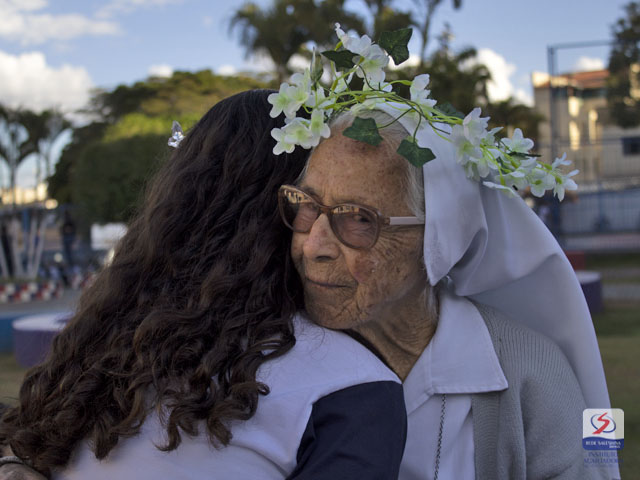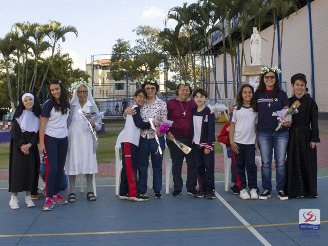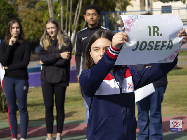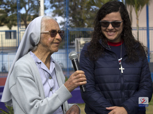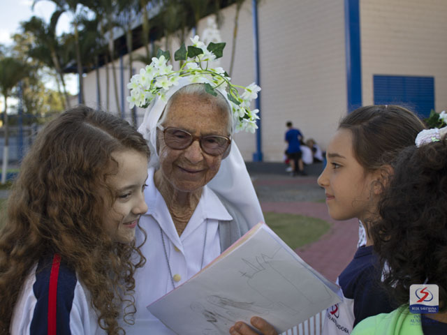 De forma singela e muito carinhosa, nossa comunidade educativa, do Maternal ao Ensino Médio, homenageou cada uma das "Irmãs Salesianas" que caminham atualmente conosco e protagonizam uma trajetória marcada pelo amor à juventude: Ir. Silvia, Ir. Josefa, Ir. Marina e Ir. Fabiane.